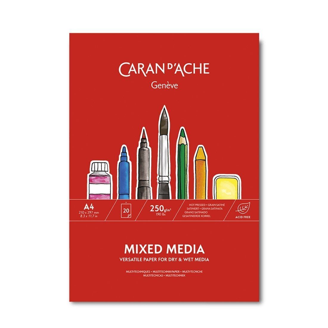 Papel mixto de alta calidad adecuado para técnicas secas y de acuarela Ideal para todos los medios de coloración Caran d'Ache: lápices de colores Pablo secos o Supracolor solubles en agua, pasteles Neocolor I y II, rotuladores Fibralo y pincel Fibralo con punta de fibra, pintura gouache