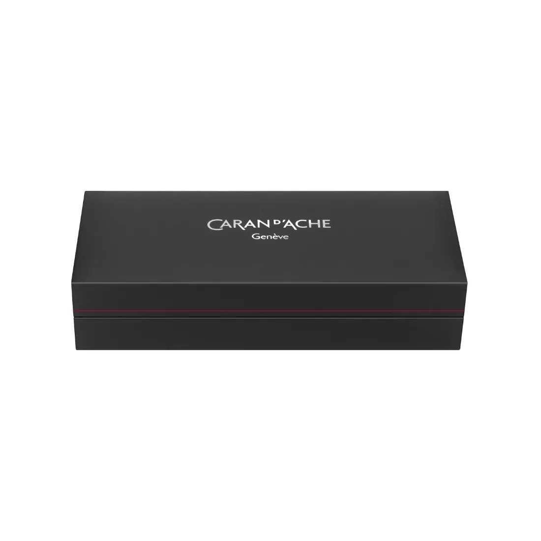 Cuerpo y capuchón redondos de latón recubiertos con una laca azul noche y un barniz mate incoloro Logotipo Caran d Ache y Swiss Made grabado en el aro Rodio y pulsador bañado en plata, que lleva un isotipo Caran d Ache ( hexágono lacado azul noche ) Rodio y clip con bisagras bañado en plata. Adornos bañados en plata y rodiados.