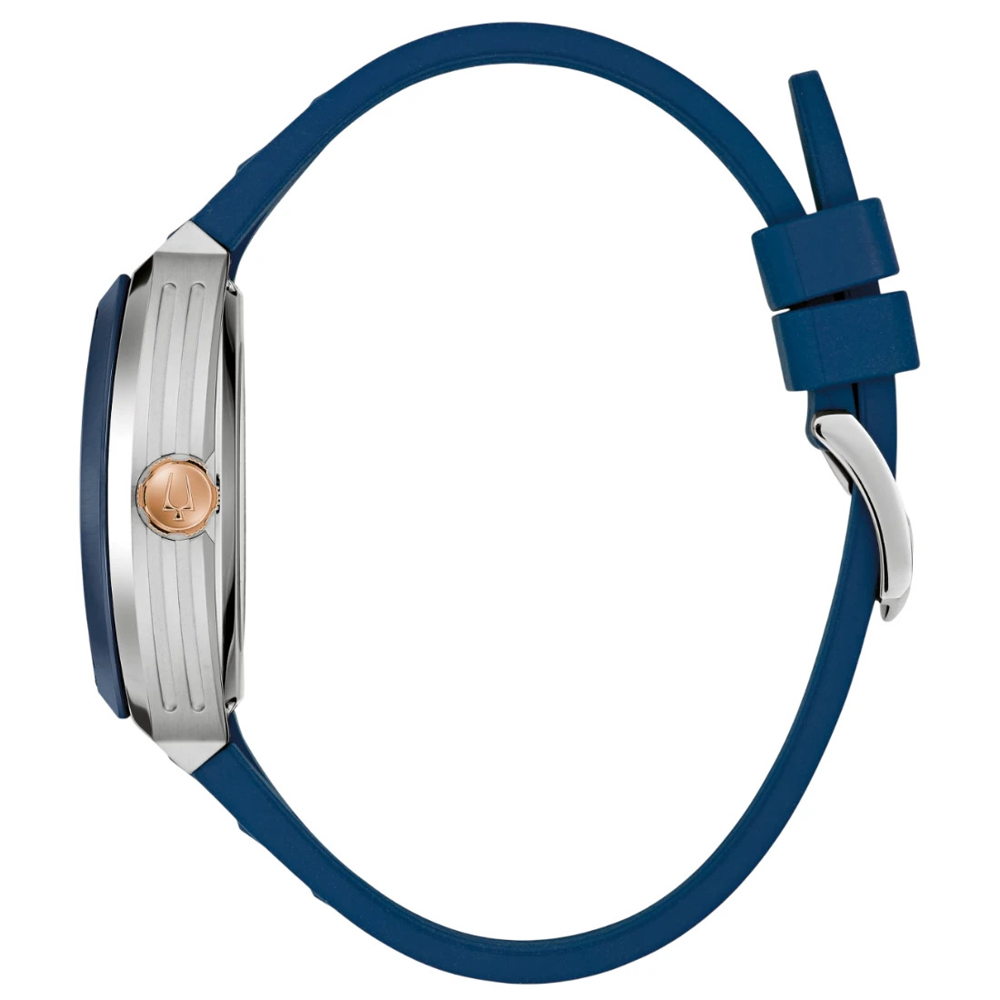Azul Esqueletado Detalles en tono Oro Rosa Indicadores y manecillas luminiscentes