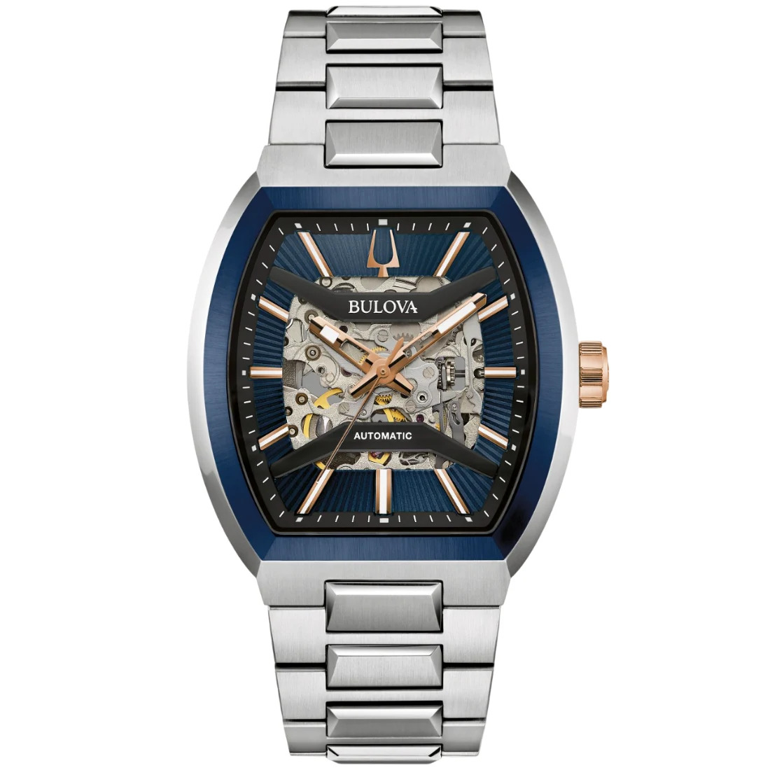 Azul Esqueletado Detalles en Oro Rosa Indicadores y manecillas luminiscentes