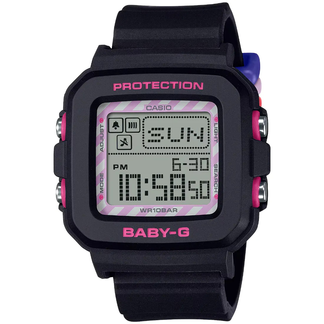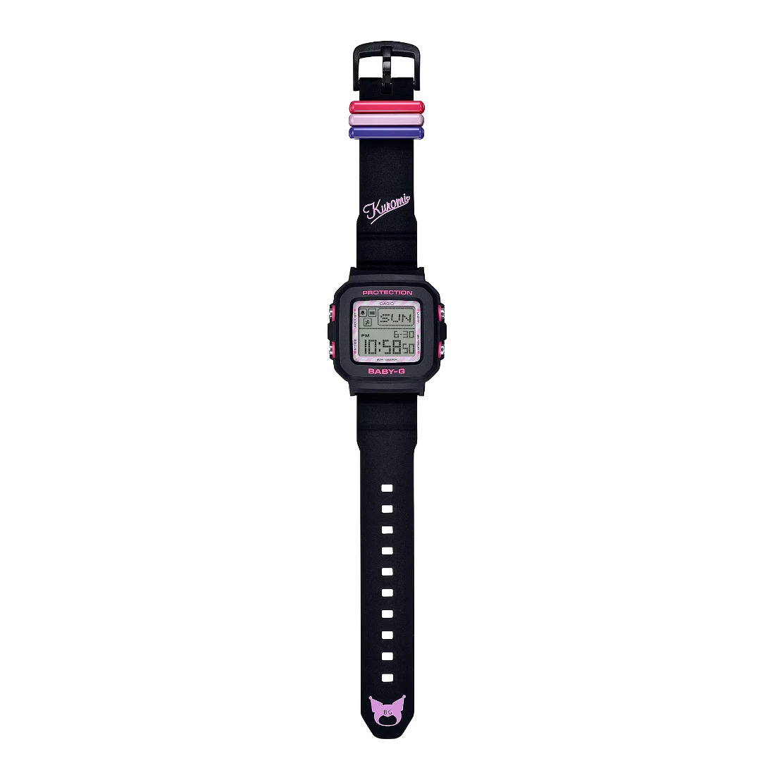 Tamaño de la caja (L× W× H): 42.8 × 39 × 14.7 mm Material de la caja/bisel: Resina Accesorio: Sujetador especial con correa Peso: 34 g Correa de resina Resistente a impactos Resistencia al agua de 100 m Fuente de alimentación: pila
