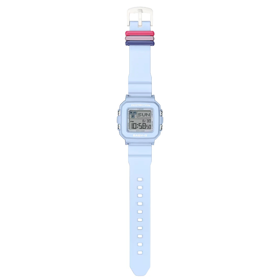 ¡Mezcle, combine, personalice! Presentamos un emocionante reloj convertible con presillas de correa intercambiables de la línea BABY-G+PLUS de relojes súper divertidos. Personalice este diseño para crear su propio estilo único. El reloj viene con tres lazos de correa y usa un pasabanda. Simplemente retire la correa, ya que no se necesitan herramientas especiales, y luego organice su día usando cualquiera de los nueve lazos de correa incluidos.