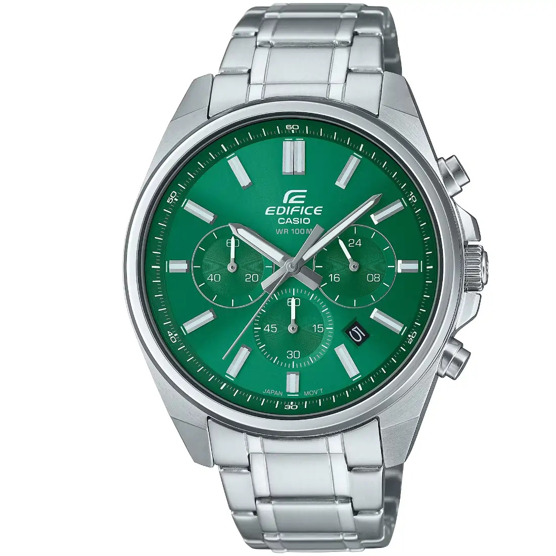 Tamaño de la caja (L× W× H): 48.6 × 43.5 × 11 mm Material de la caja/bisel: Acero inoxidable Peso: 128 g Correa de acero inoxidable Broche de una pulsación y triple pliegue Resistencia al agua de 100 m Fuente de alimentación: pila