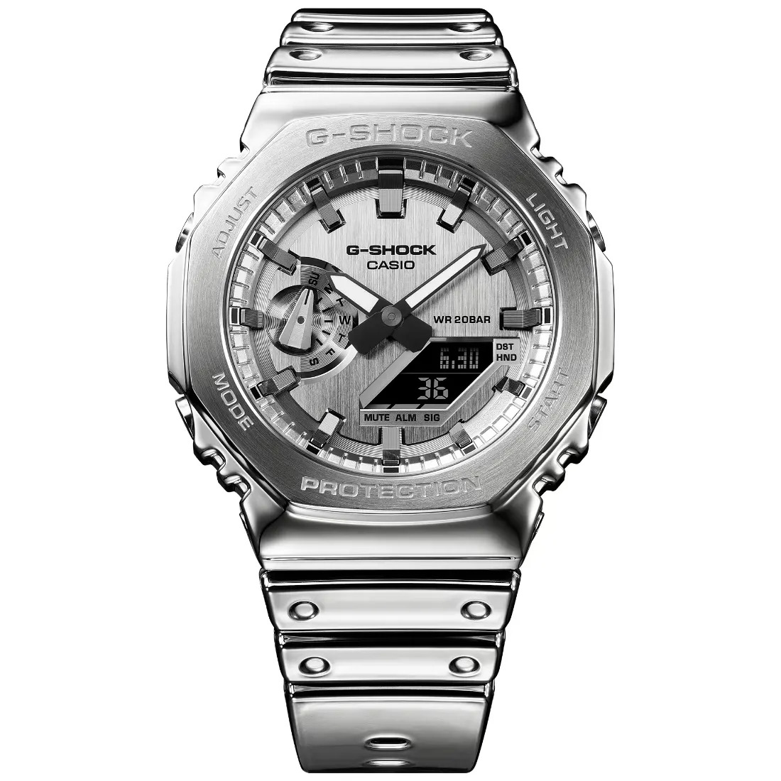 Hora mundial 31 zonas horarias Cronómetro Temporizador con cuenta regresiva 5 alarmas diarias Señal de hora Luz LED doble Blanco Calendario automático completo (hasta el año 2099) Función de silencio Precisión: h15 segundos por mes Formato 12/24 horas Función de movimiento de agujas (las agujas se apartan para proporcionar una visión sin obstrucciones del contenido digital de la pantalla). Funciones clásicas de reloj: Analógica: 2 manecillas (hora, minuto [la manecilla se mueve cada 20 segundos]), 1 dial (día) Digital: Horas, minutos, segundos, p. m., mes, fecha