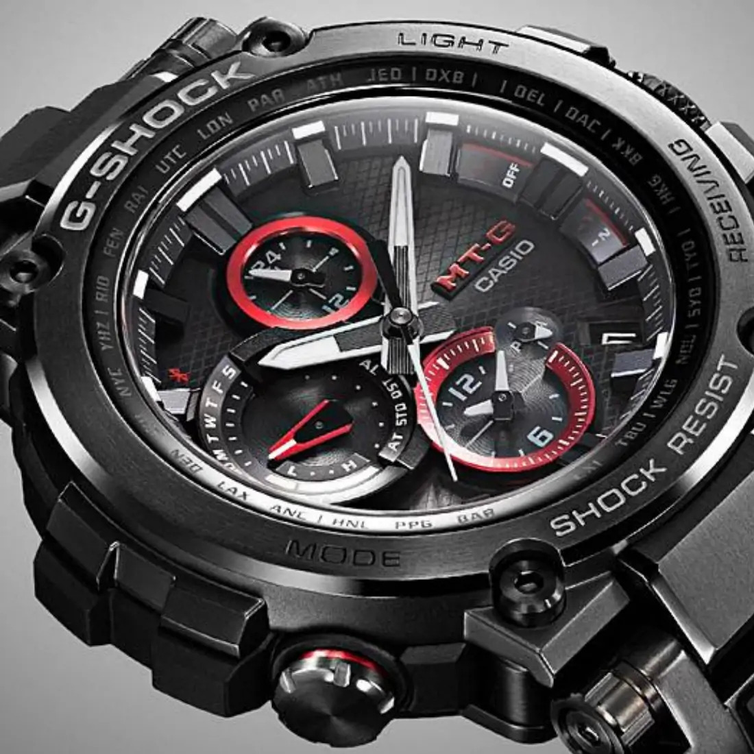 Tamaño de la caja (L× W× H): 55.8 × 51.7 × 14.4 mm Material de la caja/bisel: Resina/acero inoxidable Peso: 123 g Correa de resina TRIPLE G RESIST (resistente a impactos, a la fuerza centrífuga y a las vibraciones) Reloj radio-controlado; Multiband 6 Resistencia al agua de 200 m Fuente de alimentación: Tough Solar (con energía solar)
