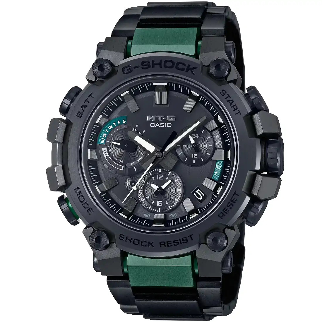 Descubra una forma innovadora de gran belleza estructural, un reloj MT-G que nació de un concepto de diseño completamente nuevo y que combina la resina utilizada en los primeros modelos G-SHOCK con materiales metálicos. Bienvenido a un nuevo nivel de diseño estructural sofisticado. Con su estructura Dual Core Guard aún más avanzada, el MTG-B3000 protege el módulo en una carcasa de resina reforzada con carbono y recubre el exterior con componentes metálicos.