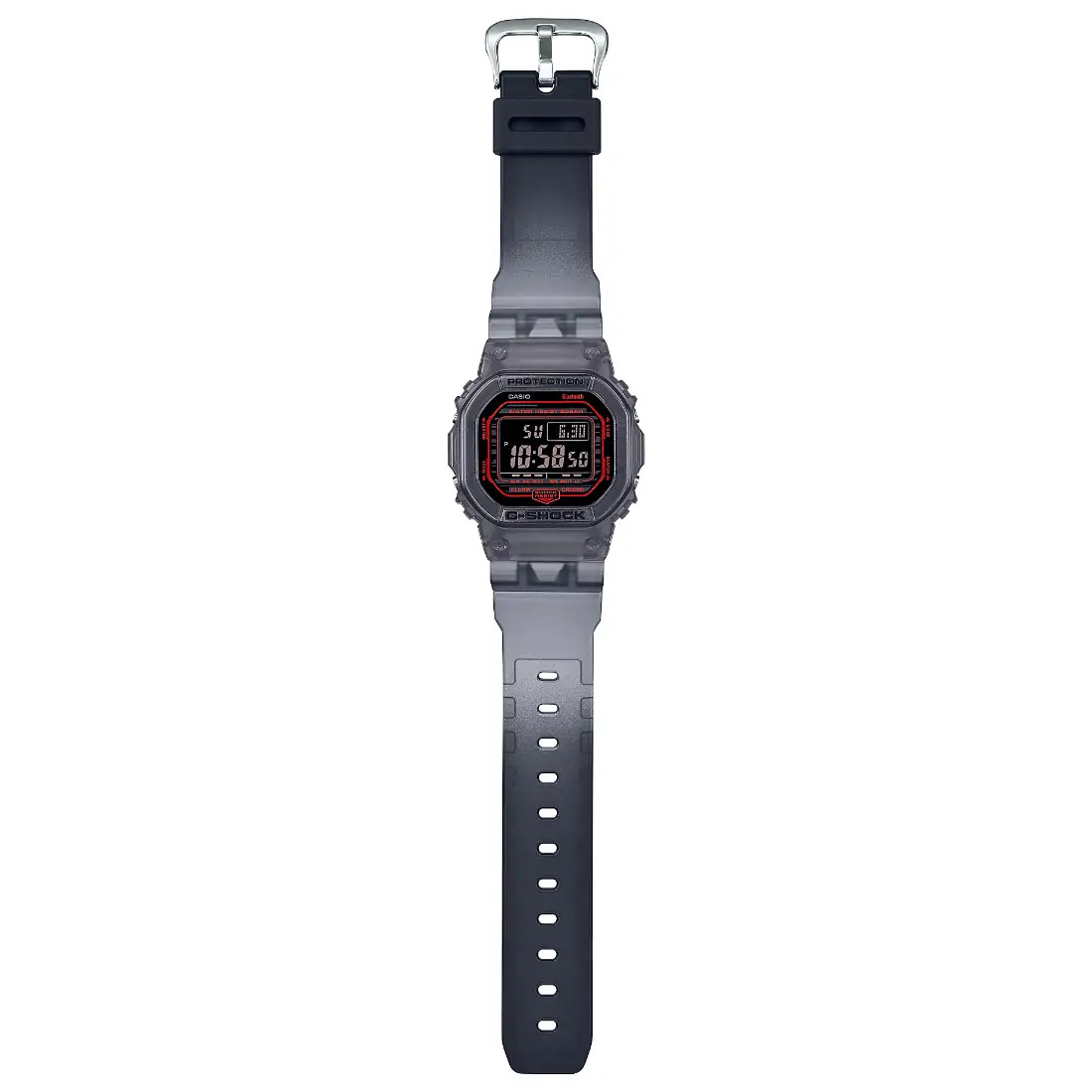 Tamaño de la caja (L× W× H): 48.9 × 42.8 × 13.4 mm Material de la caja/bisel: Resina Peso: 55 g Correa de resina Resistente a impactos Resistencia al agua de 200 m Fuente de alimentación: pila
