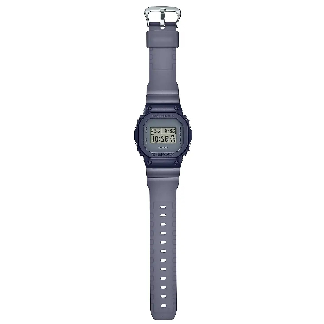 Tamaño de la caja (L× W× H): 49.6 × 43.2 × 12.9 mm Material de la caja/bisel: Resina/acero inoxidable Peso: 73 g Correa de resina Resistente a impactos Resistencia al agua de 200 m Fuente de alimentación: pila