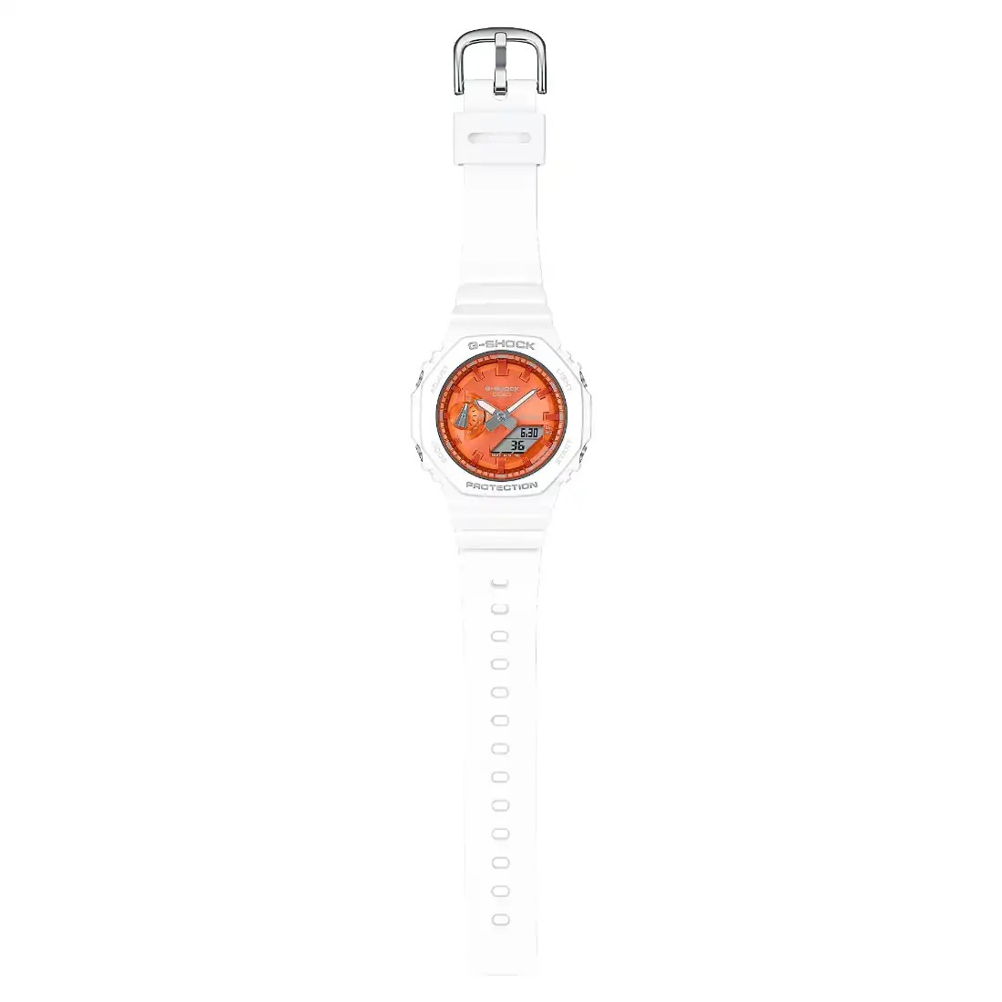 Estos relojes emparejados cuentan con un dial con acabado de deposición de vapor en uno de los seis colores metálicos, que se inspiran en los adornos y las luces brillantes de las festividades de invierno. El diseño de la fuente recuerda a los listones que se usan en los regalos festivos; se utiliza en el WR20BAR impreso en el dial del G-SHOCK y el WR10BAR impreso en el dial del BABY-G.