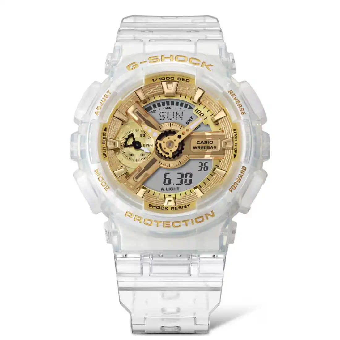 Hora mundial 29 zonas horarias ( Cronómetro Temporizador con cuenta regresiva 5 alarmas diarias (1 alarma con función de despertador) Señal de hora Luz LED Calendario automático completo (hasta el año 2099) Función de silencio Precisión: h15 segundos por mes Formato de 12 y 24 horas Funciones clásicas de reloj: Analógica: 2 manecillas (hora, minuto [la manecilla se mueve cada 20 segundos]), 1 dial (velocidad) Digital: horas, minutos, segundos, p. m., mes, fecha, día