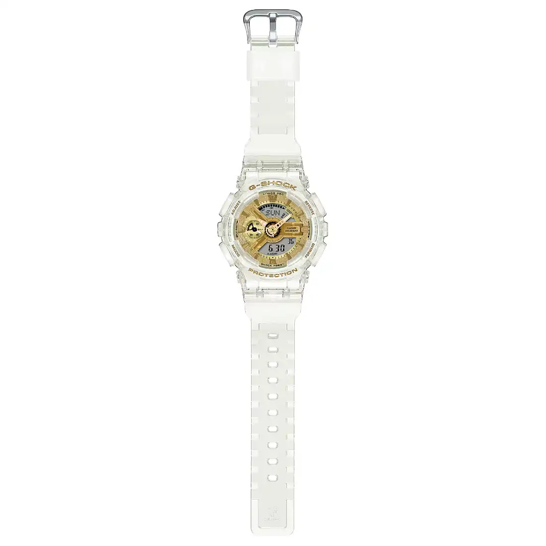 Tamaño de la caja (L× W× H): 49 × 45.9 × 15.8 mm Material de la caja/bisel: Resina Peso: 56 g Correa de resina Resistente a impactos Resistencia magnética Resistencia al agua de 200 m Fuente de alimentación: pila