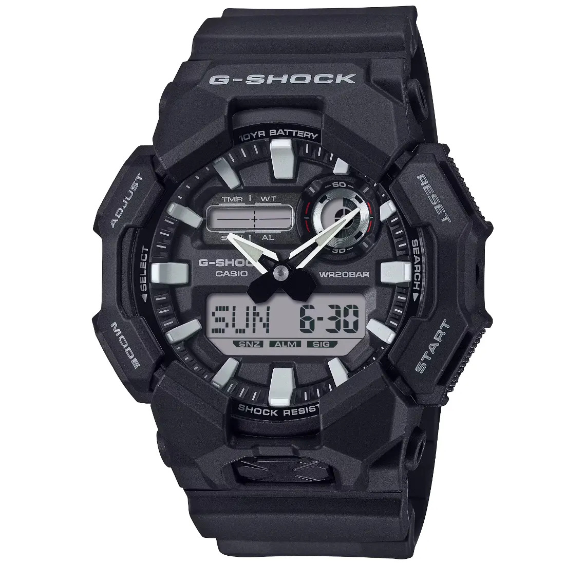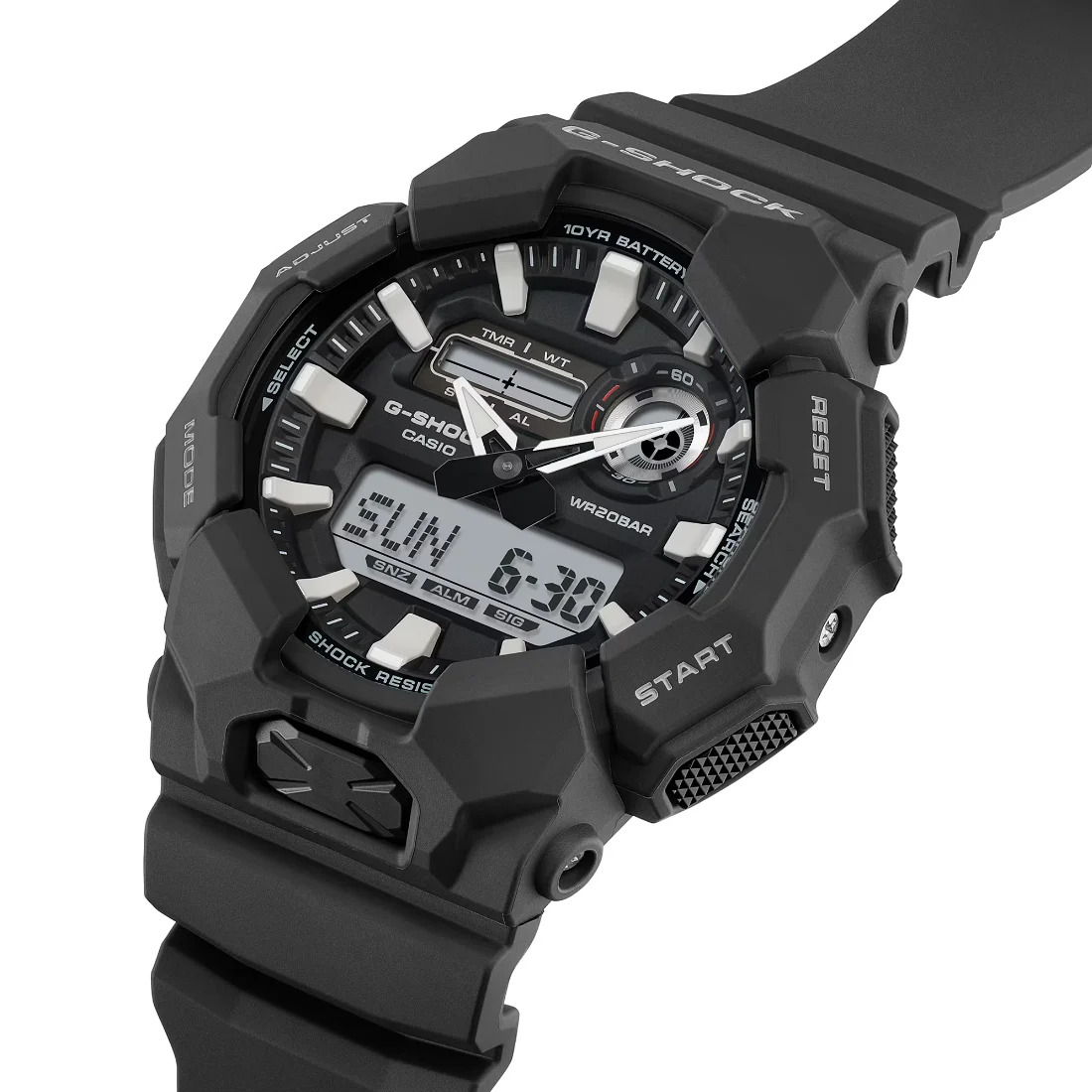 Tamaño de la caja (L× W× H): 55.1 × 51.9 × 17.5 mm Material de la caja/bisel: Carbono de origen biológico/resina de origen biológico Peso: 67 g Correa de resina de base biológica Resistente a impactos Estructura Carbon Core Guard Resistencia al agua de 200 m Fuente de alimentación: pila