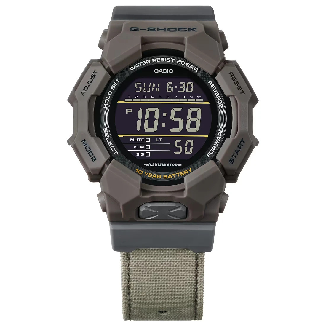 Tamaño de la caja (L× W× H): 54.9 × 51.9 × 16.1 mm Material de la caja/bisel: Carbono de origen biológico/resina de origen biológico Peso: 73 g Correa de tela (CORDURA?re/cor?) Resistente a impactos Estructura Carbon Core Guard Resistencia al agua de 200 m Fuente de alimentación: pila