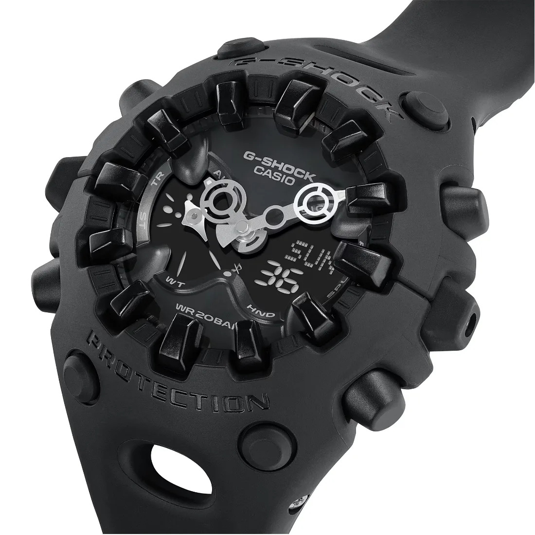 Tamaño de la caja (largo × ancho × alto): 49.1 × 58.2 × 19.6 mm Material de la caja/bisel: Resina Peso: 74 g Correa de resina Resistente a impactos Resistencia al agua de 200 m Fuente de alimentación: pila