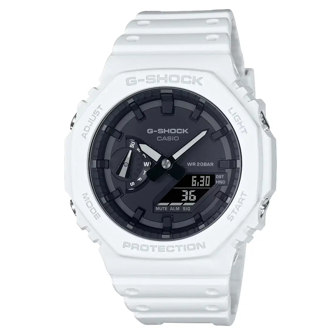 Tamaño de la caja (L× W× H): 48.5 × 45.4 × 11.8 mm Material de la caja/bisel: Carbono/resina Peso: 51 g Correa de resina Resistente a impactos Estructura Carbon Core Guard Resistencia al agua de 200 m Fuente de alimentación: pila