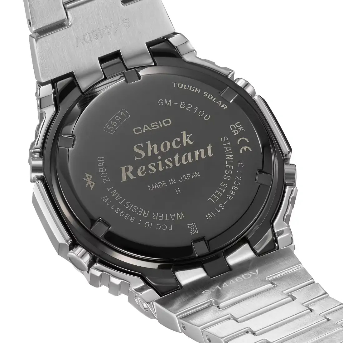 Tamaño de la caja (L× W× H): 49.8 × 44.4 × 12.8 mm Material de la caja/bisel: Acero inoxidable Peso: 165 g Correa de acero inoxidable Broche de una pulsación y triple pliegue Resistente a impactos Resistencia al agua de 200 m Fuente de alimentación: Tough Solar (con energía solar)