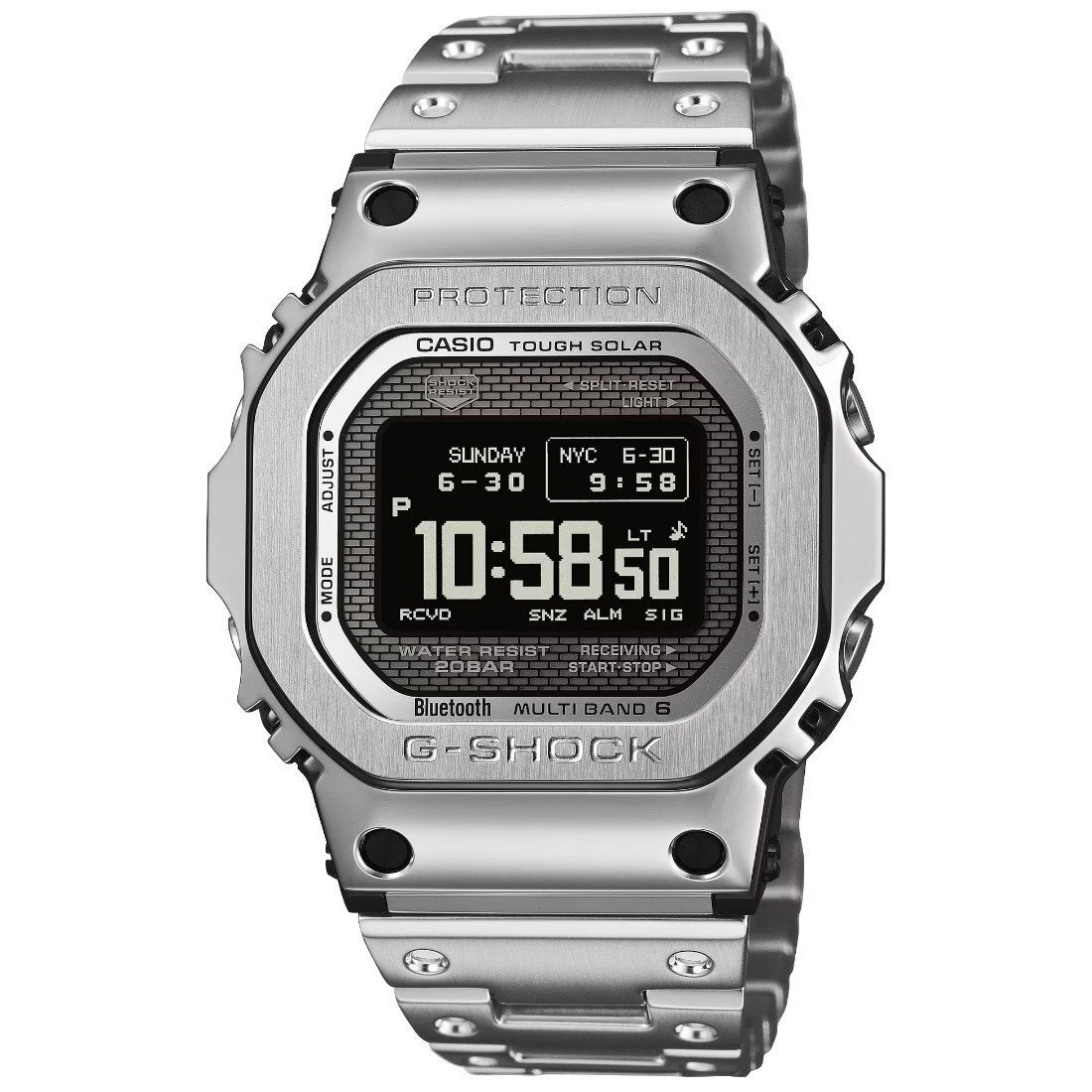 Reloj radio-controlado; Multiband 6 Bluetooth: Se conecta a un teléfono inteligente y ajusta automáticamente la hora.