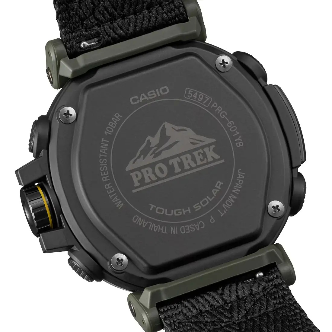 Tamaño de la caja (largo × ancho × alto): 51.6 × 51.5 × 14.8 mm Peso: 60 g Material de la caja y el bisel: Resina de base biológica/acero inoxidable Correa de tela (fabricada con botellas plásticas recicladas) Resistencia al agua de 100 m Resistente a bajas temperaturas (-10°C / 14°F) Fuente de alimentación: Funcionamiento a energía solar Altímetro Barómetro Brújula digital Termómetro