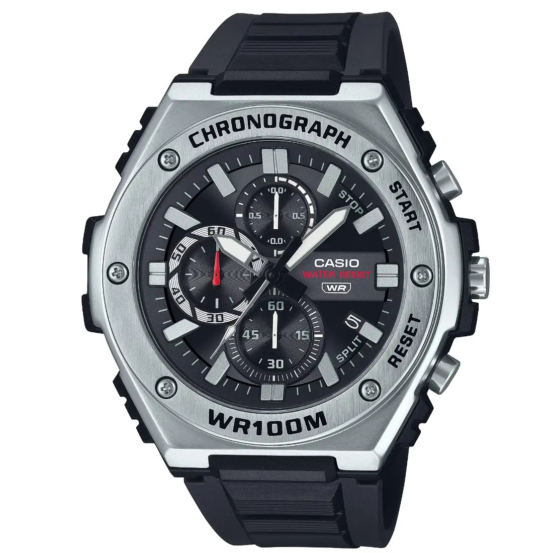 Descubre el cronógrafo que combina elegancia y deportividad en un diseño único. Este reloj analógico multidial destaca por su marco metálico con acabados de cepillado y espejo_ que le otorgan una textura sofisticada. Los índices elevados_ los diales insertos y la esfera con acabado de rayos de sol añaden un toque moderno y casual. Este reloj es el equilibrio perfecto entre estilo audaz y rendimiento para tus días más activos.