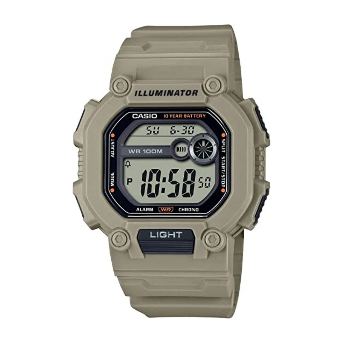 n nUn reloj con estilo y funcionalidad_ además de una correa extra larga para un ajuste más cómodo. El botón frontal facilita el acceso a la retroiluminación LED para que pueda leer fácilmente el dial en lugares oscuros. Estos relojes también vienen con características diarias útiles como cronómetro_ alarma_ temporizador_ calendario y funciones de tiempo dual_ sin mencionar la resistencia al agua de hasta 100 metros y una batería de 10 años de la que no tendrá que preocuparse durante años.
