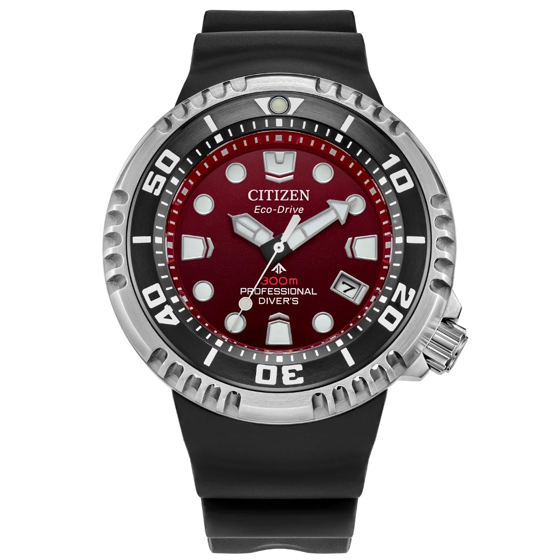 Este nuevo reloj forma parte de la colección Promaster Sea, diseñada para el buceo, marcando una visión única del estilo y rendimiento de grado profesional. El robusto exterior de acero inoxidable en tono plateado de 46 mm asegura hasta 300 metros de resistencia al agua, haciendo uso de una corona roscada a las 4 en punto y un bisel de fácil agarre ejecutado en negro, lo que le da una estética increíblemente audaz. Los pasadores ocultos se conectan a una correa hecha de BENEBiOL™ PU, que incluye materiales de origen vegetal, asegurando el reloj en la muñeca. La esfera, de alta legibilidad, cobra vida a través de un profundo y gradiente rojo, con un par de prominentes manecillas que se desplazan por encima, mientras que una sutil fecha a las 4 en punto añade funcionalidad diaria.