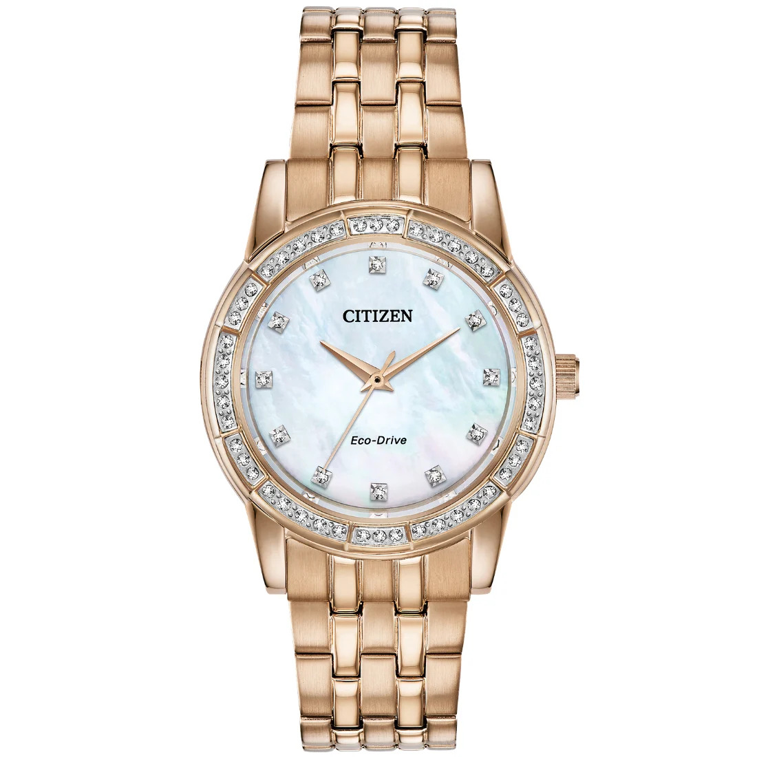Material de la caja Tono Oro rosa Acero Inoxidable Decorado con 48 cristales en el bisel