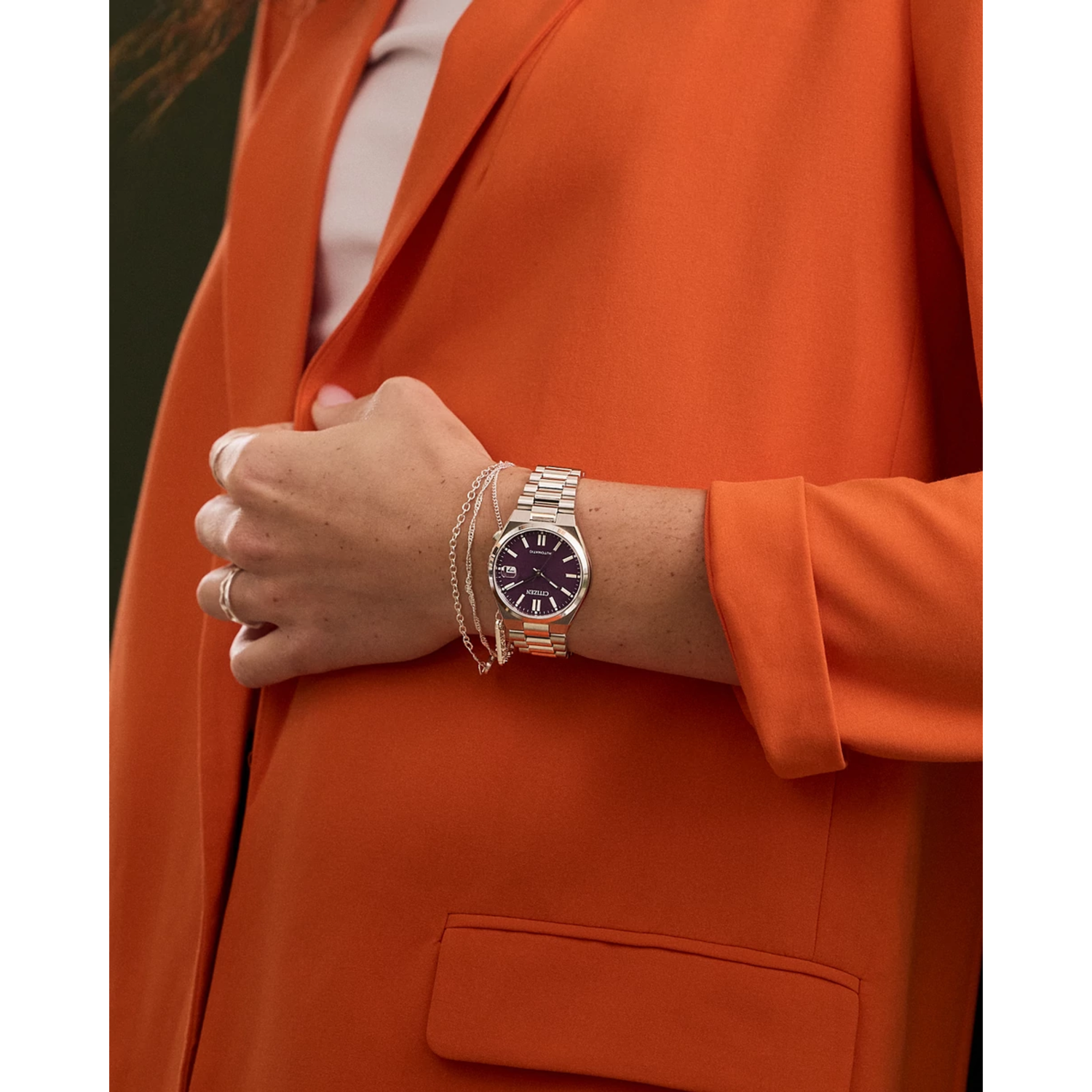 El TSUYOSA Automático, de la serie NJ020, lleva el estilo deportivo ultramoderno directamente a tu muñeca. El sofisticado diseño del reloj, de 37 mm, transmite una sólida impresión a través de una caja de acero inoxidable plateado y un brazalete a juego perfectamente integrado. Bajo un cristal de zafiro antirreflejante, este deportivo reloj se complementa con una carátula azul que asemeja los rayos de sol, una ventanilla de fecha a las 3 en punto y detalles plateados que complementan su llamativa configuración. Este lujoso reloj es una opción de uso diario preparada para el trabajo, el ocio y todo lo demás. Calibre 8210.