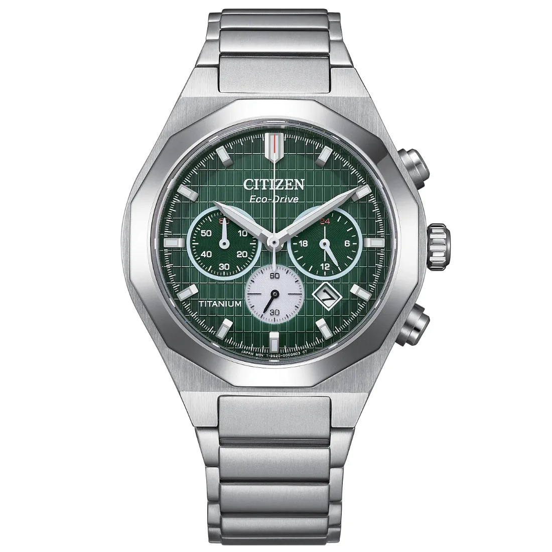 La robustez y el estilo refinado se unen en el nuevo cronógrafo Zenshin Senkei Super Titanium™. En la muñeca, la caja plateada Super Titanium™ mide 41 mm, es ligera, resistente a arañazos y óxido, y se integra directamente con el brazalete a juego para un look deportivo y moderno. Una corona profundamente moleteada junto con un bisel multifacético realza el encanto distintivo del reloj, mientras que las técnicas de acabado cepillado aplicadas en toda la pieza realzan aún más su estética.