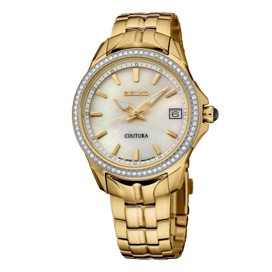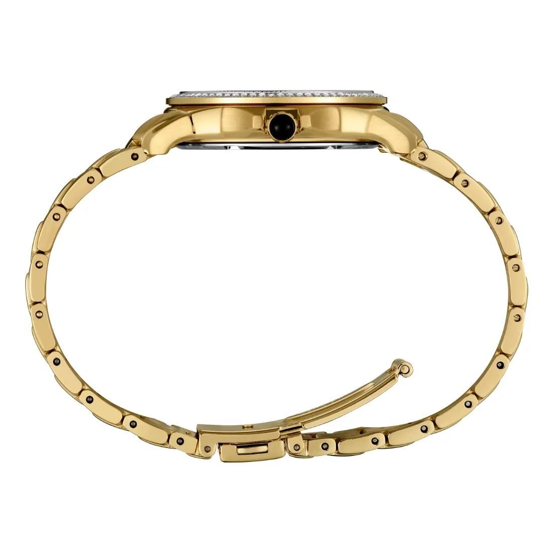 Acero inoxidable con acabado dorado y bisel con 74 diamantes