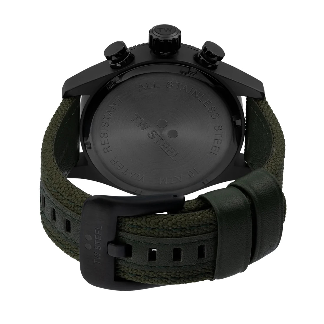 Lona verde oscuro sobre correa de cuero con costuras verde oscuro