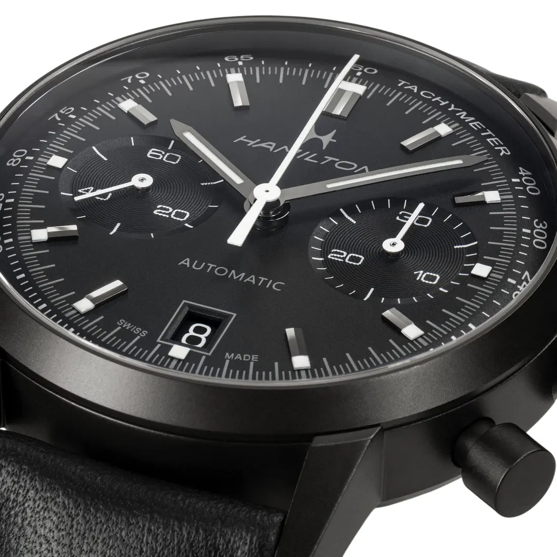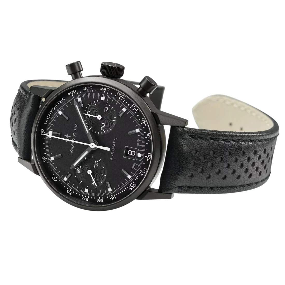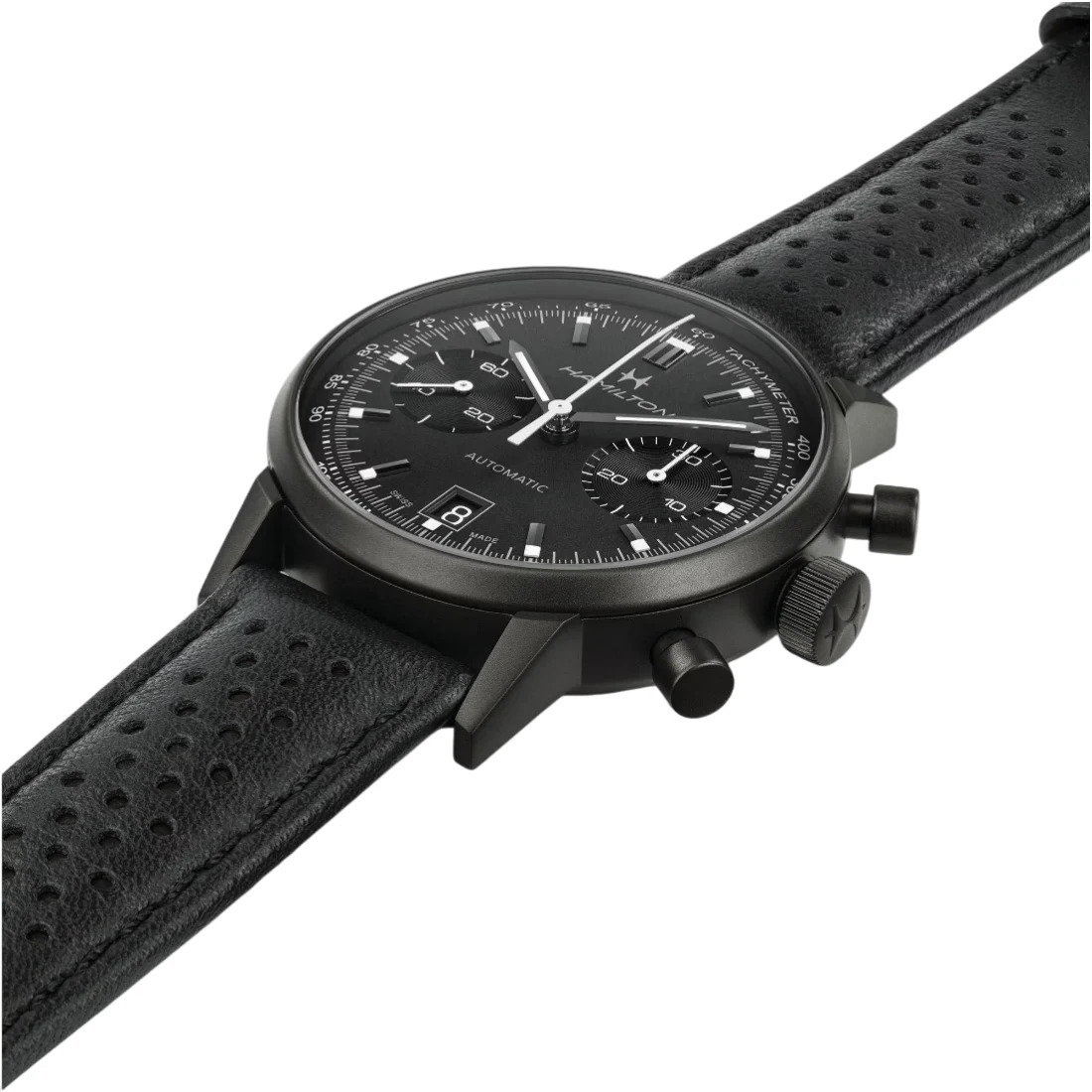 Inspirado por sus orígenes en 1968 en el mundo de las carreras, el Intra-Matic Auto Chrono da la bienvenida a una nueva interpretación de su icónico diseño. La caja de 40 mm con revestimiento PVD, la esfera y la correa perforada completamente negras, una versión moderna de un clásico vintage, añaden un toque contemporáneo a un modelo histórico que se remonta a la década de 1970.