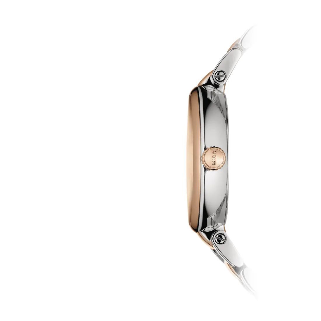 Forma de la caja: Redondo Longitud: 29.00 Anchura: 29.00 Espesor Medio (mm): 8 Astas: 8.50 Material de la caja: Acero inoxidable con revestimiento de PVD color oro rosa Cristal: Cristal zafiro con tratamiento antirreflejante en ambos lados