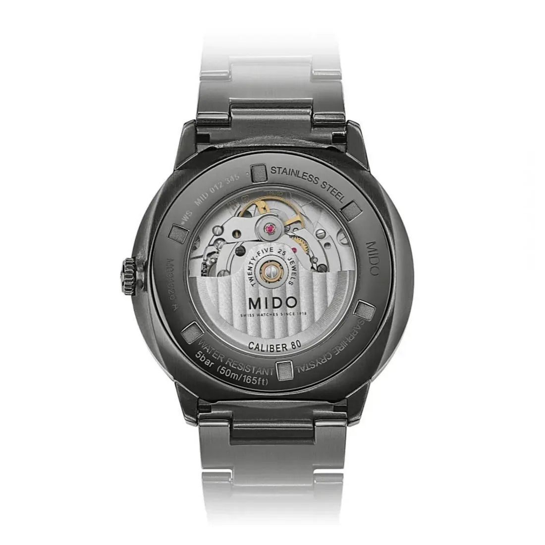 Funciones: Gran fecha Calibre: Automático Mido Calibre 80 (base ETA C07.651) Movimiento: Mido Automático Reserva de marcha: Reserva de marcha de hasta 80 horas Diámetro movimiento (mm): 28.80 Joyas: 25 Calibre: 12.75