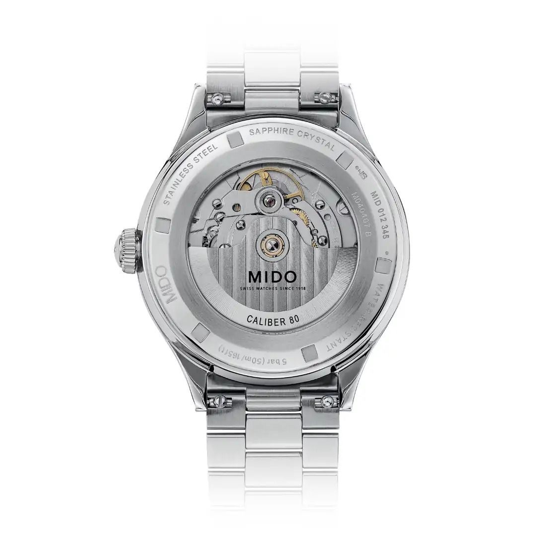 Funciones: Día Calibre: Automático Mido Calibre 80 (base ETA C07.621) Movimiento: Mido Automático Reserva de marcha: Reserva de marcha de hasta 80 horas Diámetro movimiento (mm): 25.60 Joyas: 25 Calibre: 11.5