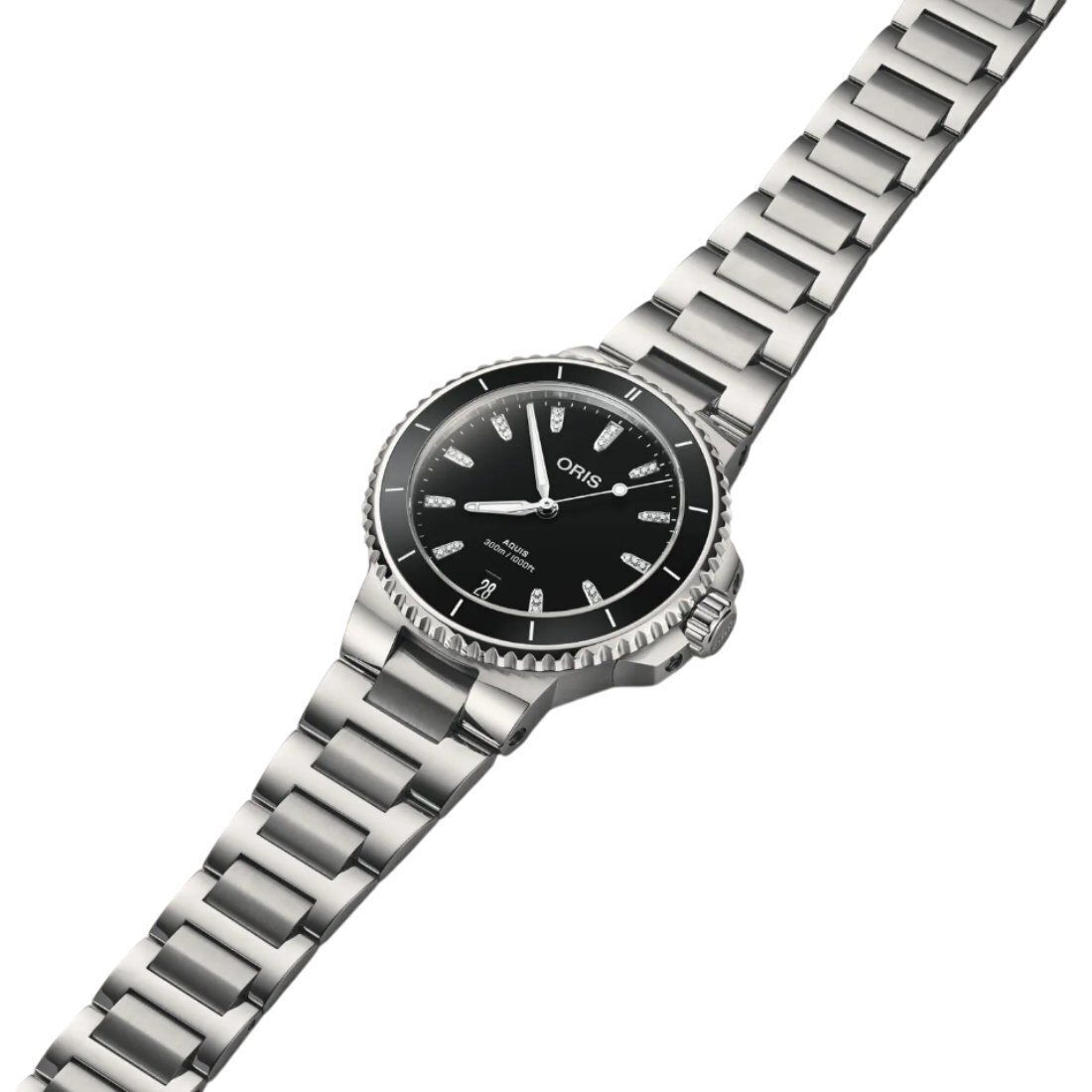 Caja de acero y cerámica con escala minutera. Zafiro, ambas caras abombadas, capa interior antirreflejos. Acero inoxidable, atornillado, cristal mineral transparente. Diámetro: 36.50 mm Hermeticidad: 30 bar Anchura entre cuernos: 19 mm