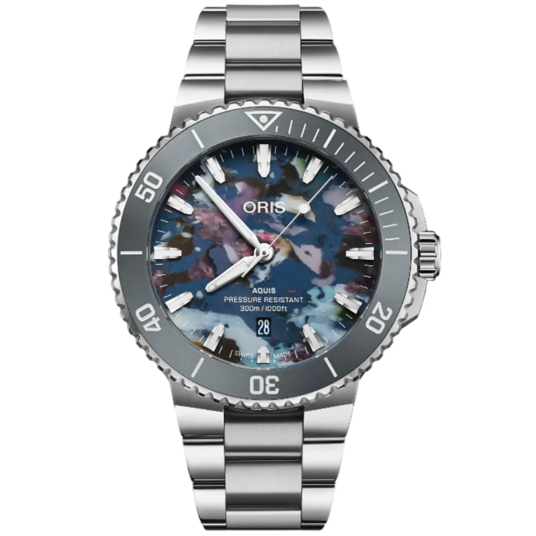 Caja: Anillo superior multipiezas acero inoxidable, escala minutera cerámica. Zafiro, ambas caras abombadas, capa interior antirreflejos. Acero inoxidable, atornillado, cristal mineral transparente. Diámetro: 43.50 mm Resistencia al Agua: 30 bar Anchura entre cuernos: 23 mm