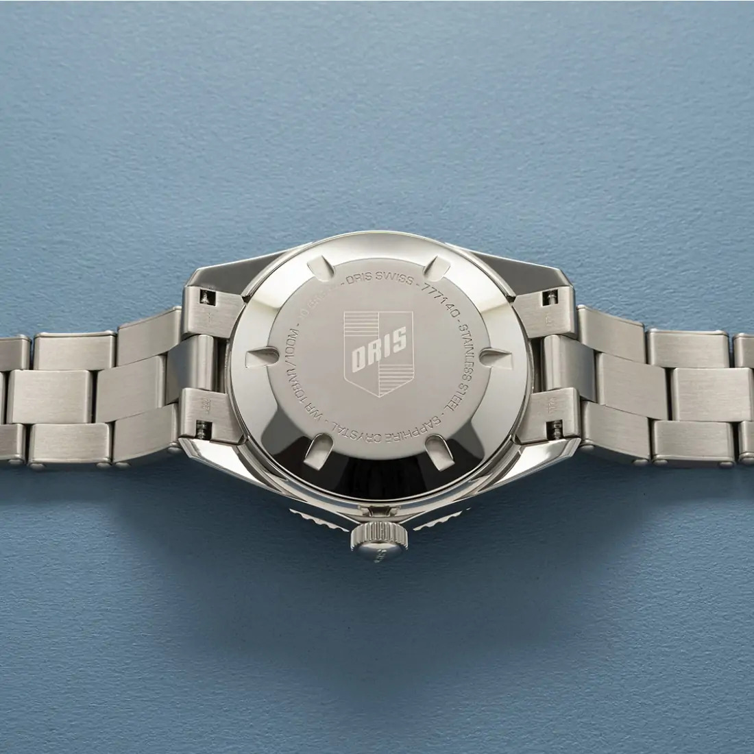 NÚMERO Oris 733, base SW 200-1 DIMENSIONES G 25.60 mm, 11 1/2??? FUNCIONES Agujas horas, minutos y segundos centrales, ventana fecha, fecha instantánea, corrector fecha, excelente cronometrador y paro segundo REMONTE Remonte automático RESERVA DE MARCHA 38 h VIBRACIONES 28?800 A/h, 4 Hz RUBÍES 26