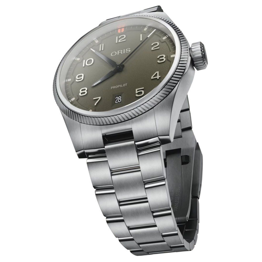 Caja de acero. Zafiro, ambas caras abombadas, capa interior antirreflejos. Acero inoxidable, atornillado, cristal mineral transparente. Diámetro: 41.00 mm, Hermeticidad: 10 bar, Anchura entre cuernos: 20 mm