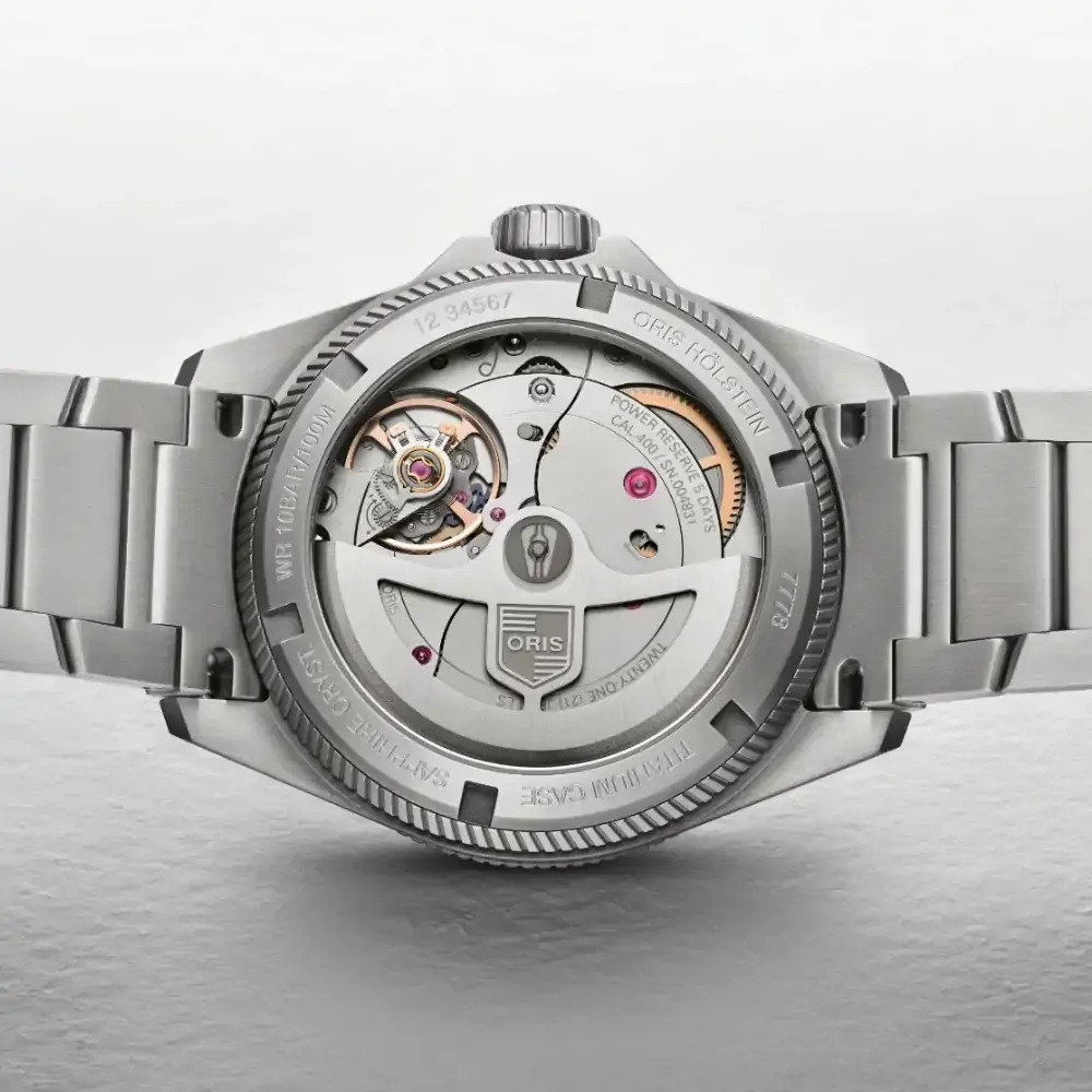 NÚMERO Oris 400 DIMENSIONES G 30.00 mm, 13 1/4??? FUNCIONES Agujas horas, minutos y segundos centrales, ventana fecha, fecha instantánea, corrector fecha, excelente cronometrador y paro segundo REMONTE Remonte automático RESERVA DE MARCHA 120 h VIBRACIONES 28?800 A/h, 4 Hz RUBÍES 21