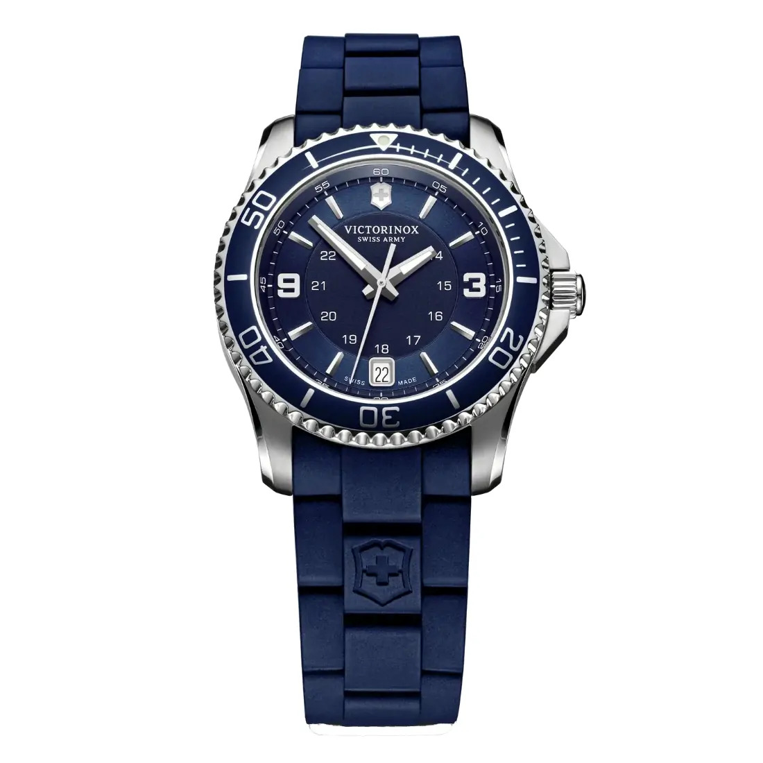 Color del maletín: Plata Color del bisel: Plata Color de la esfera: Azul Color del brazalete: Azul