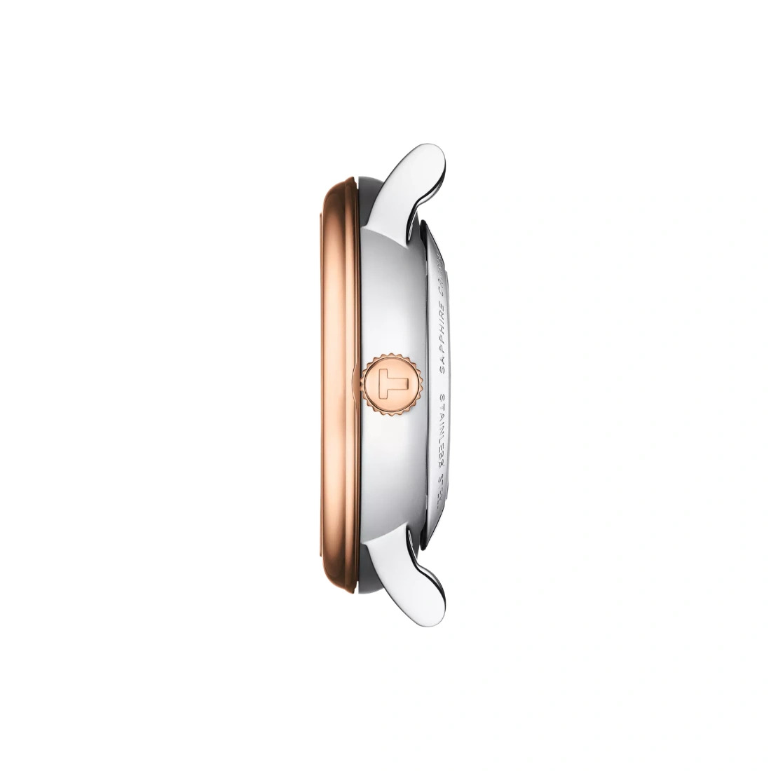Referencia de la correa/cadena: T605043959 Detalles de la correa: Acero Inoxidable Recubrimiento del brazalete: PVD Color de la correa: Gris, Oro rosa 5n Cierre: Cierre de mariposa con pulsadores
