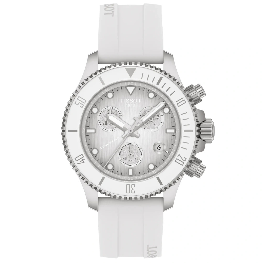 Referencia de la correa/cadena: T603047457 Detalles de la correa: Silicona Color de la correa: Blanco Cierre: Hebilla estándar, Pulsera intercambiable de fácil apertura