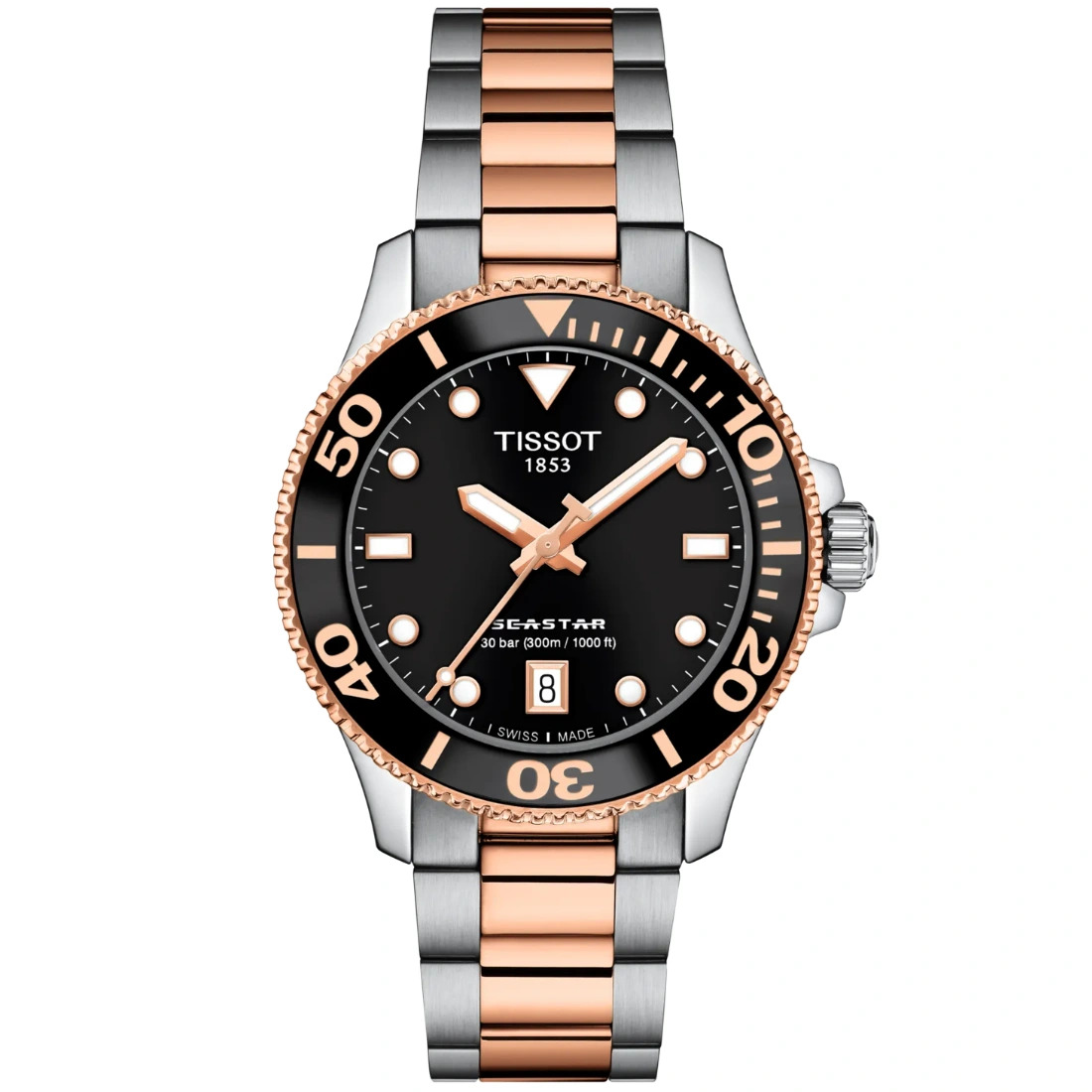 Referencia de la correa/cadena: T605050687 Detalles de la correa: Acero Inoxidable Recubrimiento del brazalete: PVD Color de la correa: Gris, Oro rosa 5n Cierre: Cierre plegable con seguridad y pulsadores, Pulsera intercambiable de fácil apertura