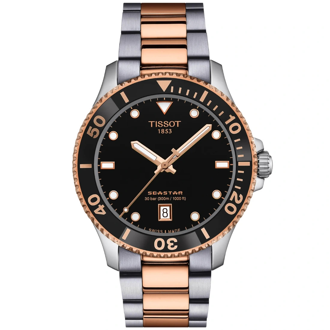 Referencia de la correa/cadena: T605050709 Detalles de la correa: Acero Inoxidable Recubrimiento del brazalete: PVD Color de la correa: Gris, Oro rosa 5n Cierre: Cierre plegable con seguridad y pulsadores, Pulsera intercambiable de fácil apertura