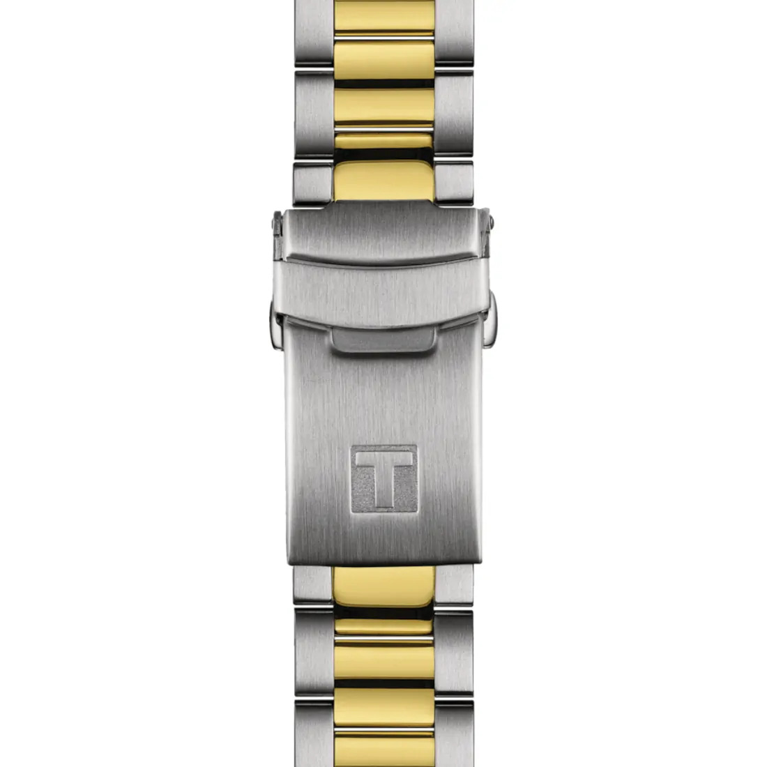 Referencia de la correa/cadena: T605049461 Detalles de la correa: Acero Inoxidable Color de la correa: Gris, Oro amarillo 1n14 Cierre: Pulsera intercambiable de fácil apertura, Cierre plegable con seguridad y pulsadores Referencia de la correa: T613049479
