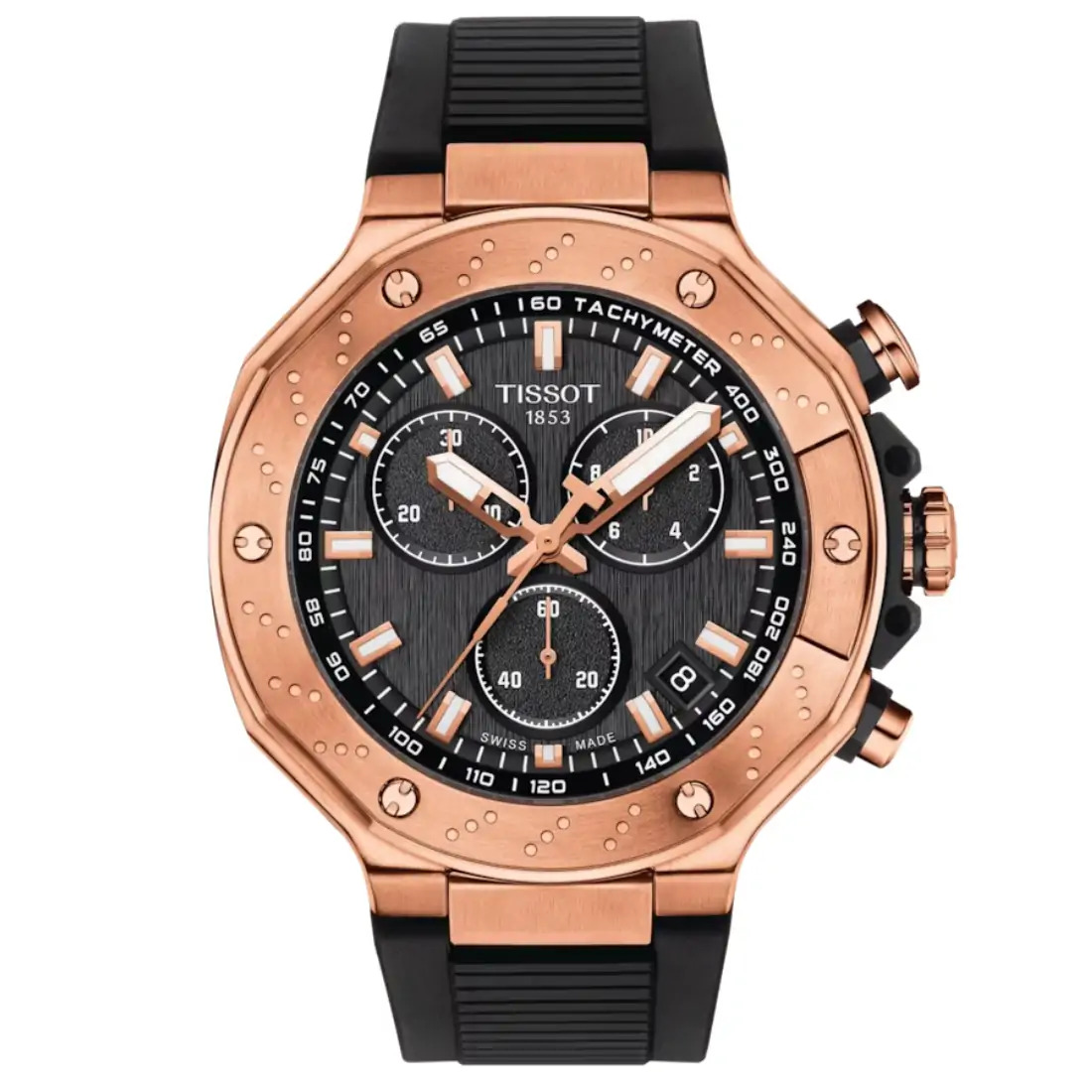 La colección T-Race está inspirada en ese estilo de vida y la libertad, el camino abierto y la pasión: es el reloj elegido por el caballero ciclista. La familia T-Race mantiene al oyente inmerso en el entorno mecánico y evoca constantemente su espíritu. Por ejemplo, hay un disco de freno y un calibre en el bisel, los pulsadores están inspirados en los manillares y las aletas de refrigeración del motor están representadas en el lateral de la caja. Es resistente al agua, con un movimiento de cronógrafo de cuarzo y manecillas de horas y minutos distintas recubiertas con SuperlumiNova. Tissot se ha inspirado en su colaboración para producir relojes que reflejen la naturaleza dinámica de las bicicletas y la emoción del deporte.