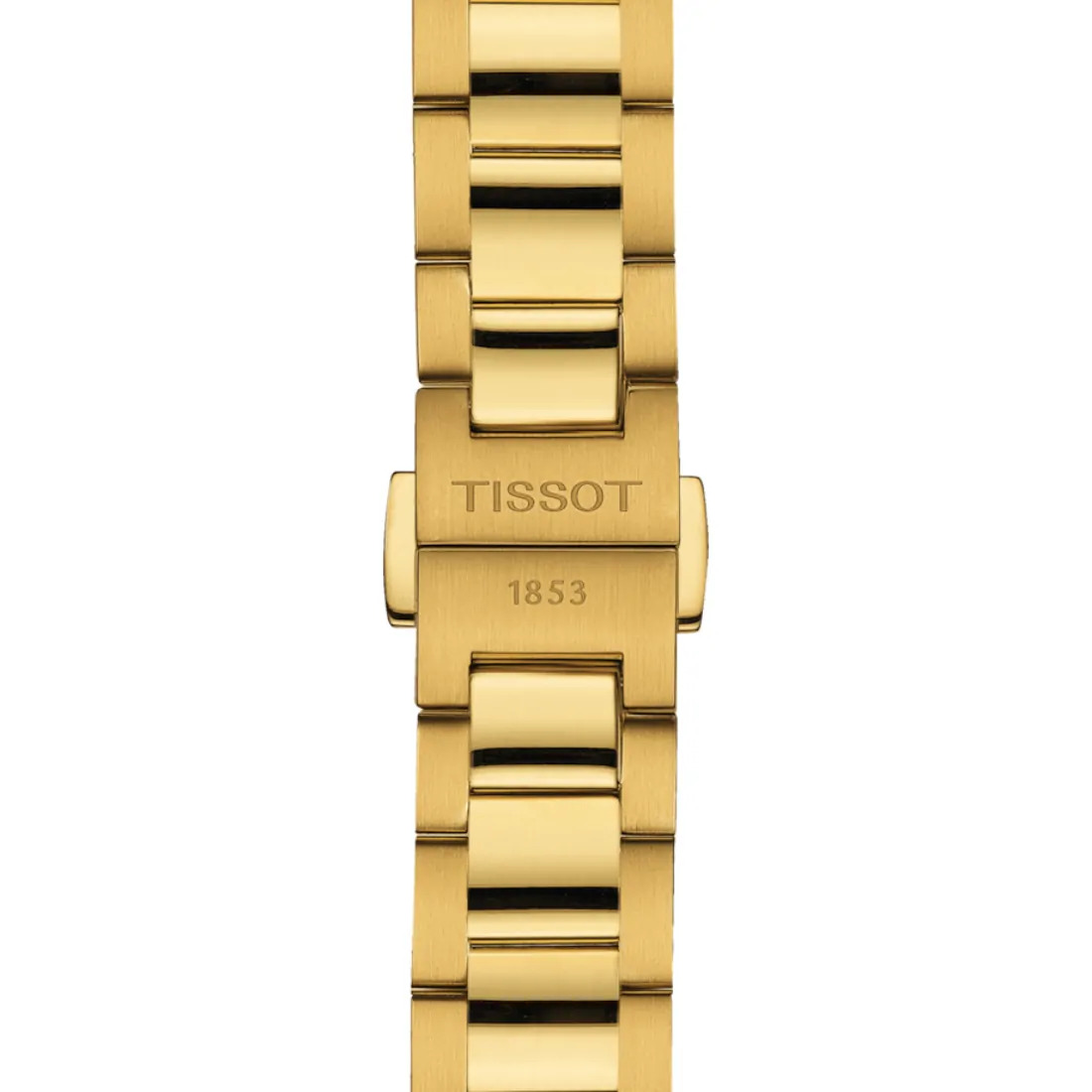 Referencia de la correa/cadena: T605049324 Detalles de la correa: Acero Inoxidable Color de la correa: Oro amarillo 1n14 Cierre: Pulsera intercambiable de fácil apertura, Cierre de mariposa con pulsadores Referencia de la correa: T613049343|T613049344