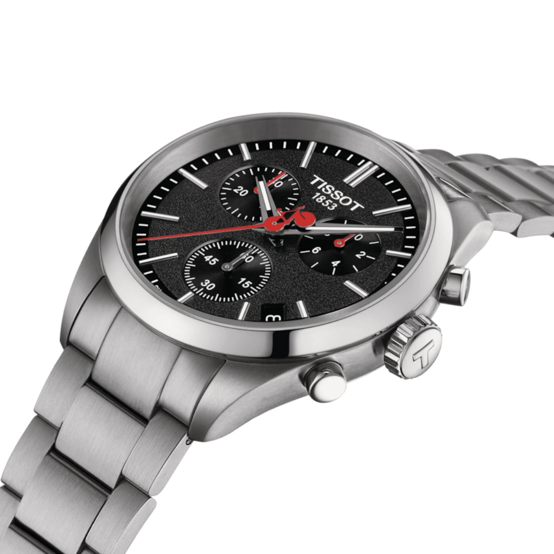 Referencia de la correa/cadena: T605049796 Detalles de la correa: Acero Inoxidable Color de la correa: Gris Cierre: Pulsera intercambiable de fácil apertura, Hebilla estándar, Cierre de mariposa con pulsadores Referencia de la correa: T613049824|T613049841 Una correa secundaria bimaterial de color negro utiliza la textura de los puños del manillar de una bicicleta y presenta colores correspondientes a los de La Vuelta.