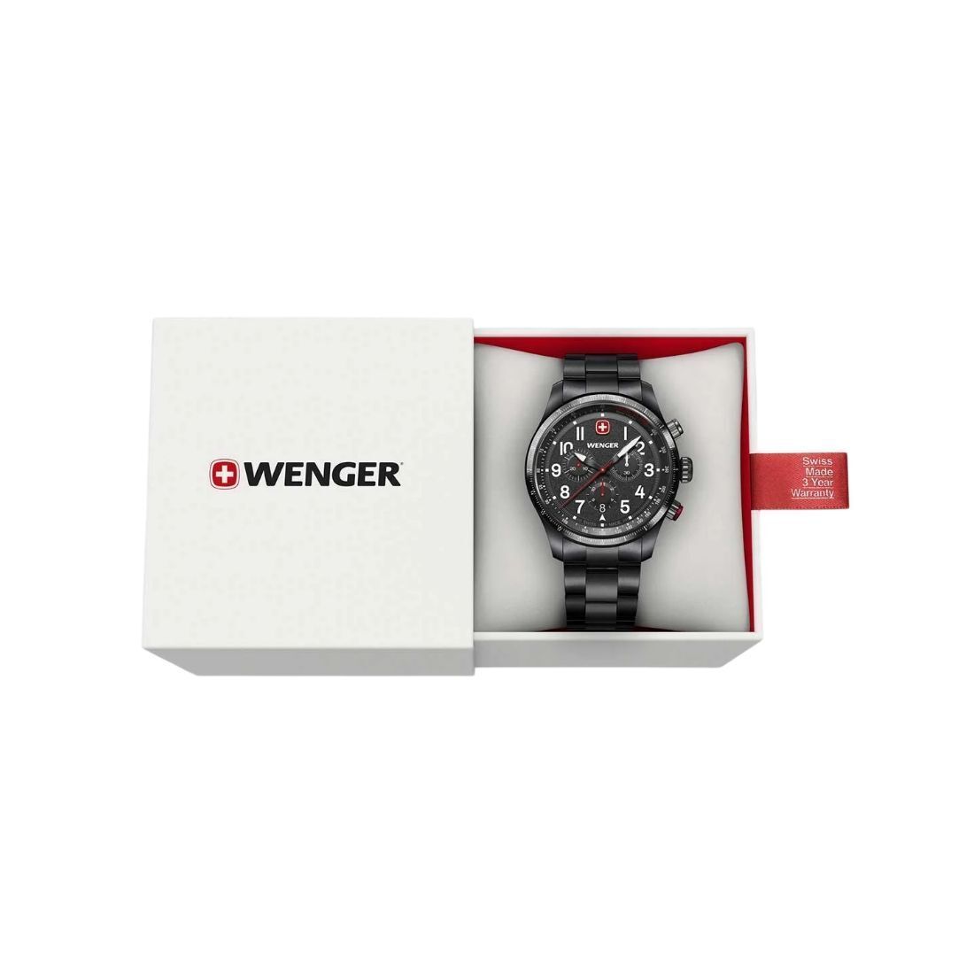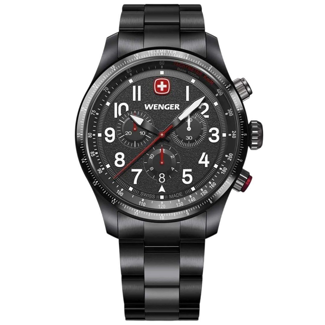 Cristal mineral con revestimiento de zafiro, Cronógrafo, Fecha, Material luminiscente en la esfera y en las manecillas de minutos y horas, Tapa de caja atornillada